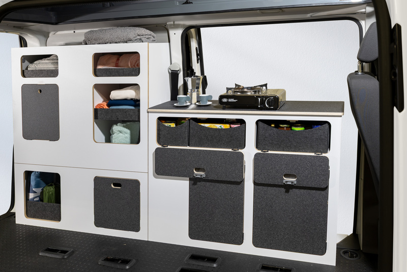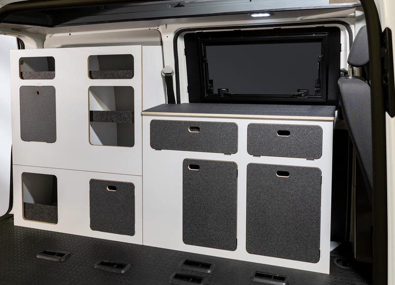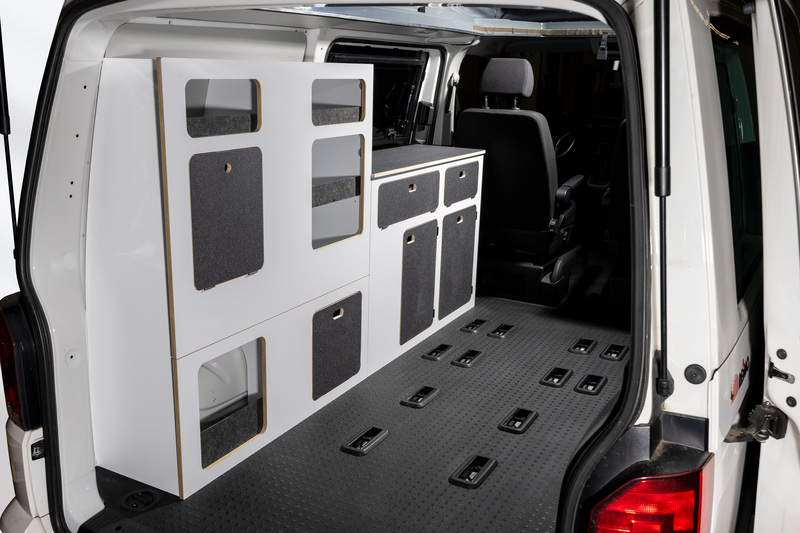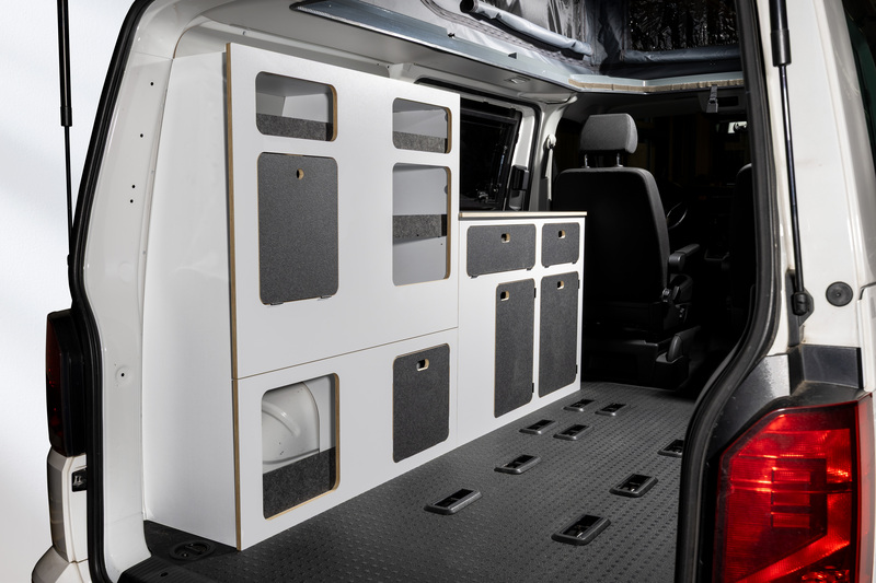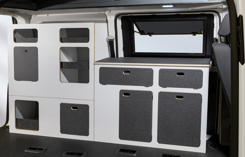 Weiterführende Links zu "Flatpack-Möbelzeile für VW T5 / T6 / T6.1 kurzer Radstand - Weiß - Basalt"