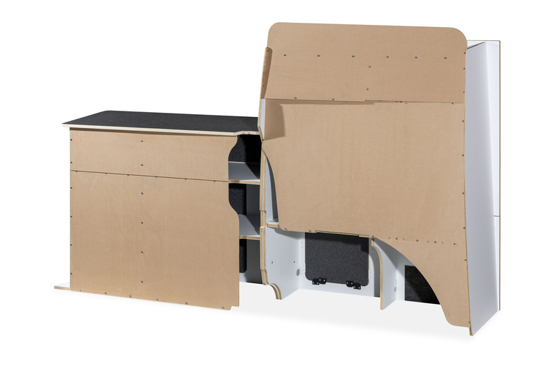 Diese hochwertige Möbelzeile bietet eine komplette Camper-Innenlösung mit Küchenblock und Hochschrank für den linken Fahrzeugeinbau. Entwickelt für den Selbsteinbau, einfach aufzubauen, flexibel anpassbar und kompatibel mit den gängigsten Schlafbanksystemen. Durch CNC-Präzision, moderne HPL-Oberflächen und durchdachte Details entsteht ein Qualitätsprodukt zum attraktiven Einstiegspreis – ohne Kompromisse beim Look.