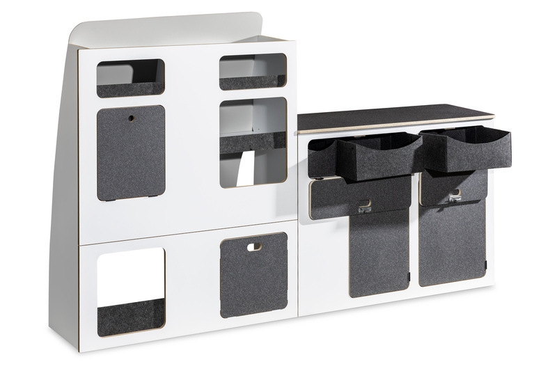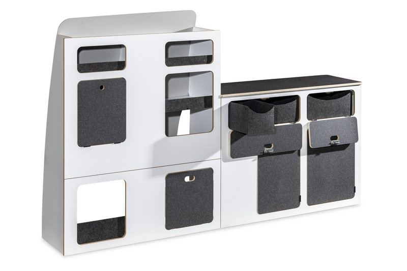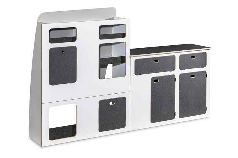 Flatpack-Möbelzeile für VW T5 / T6 / T6.1 kurzer Radstand - Weiß - Basalt