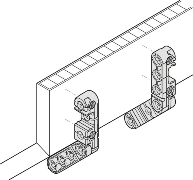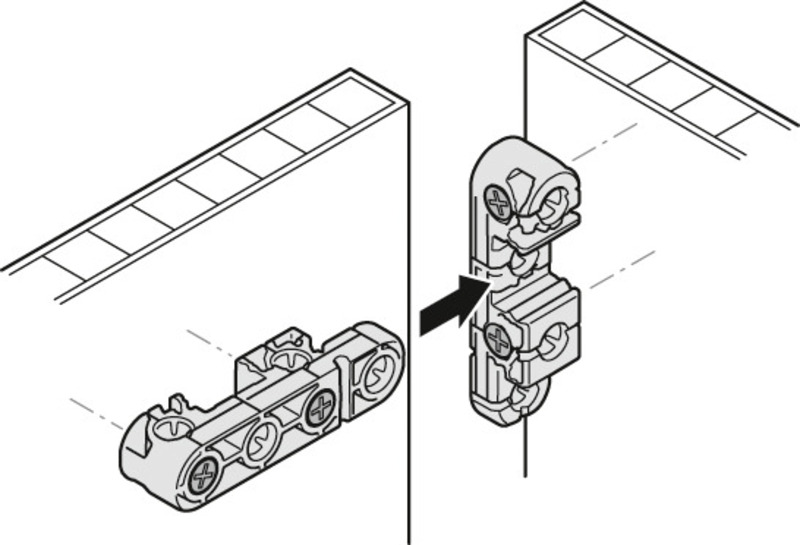Vielseitiger Beschlag für verdeckt liegende, lösbare Verbindungen durch Aufschieben, Einhängen oder Einrasten. Ermöglicht variable Befestigungs- und Einrastpositionen in 90°, 135° oder 180° Winkeln. Geeignet für Wandverkleidungen, Trennwände, Flächenverbindungen oder als Möbelfuß. Montage durch Aufschrauben oder Einlassen, passend für 32-mm-Raster. Die Raststärke ist über die Anzahl der Verbinder variierbar.